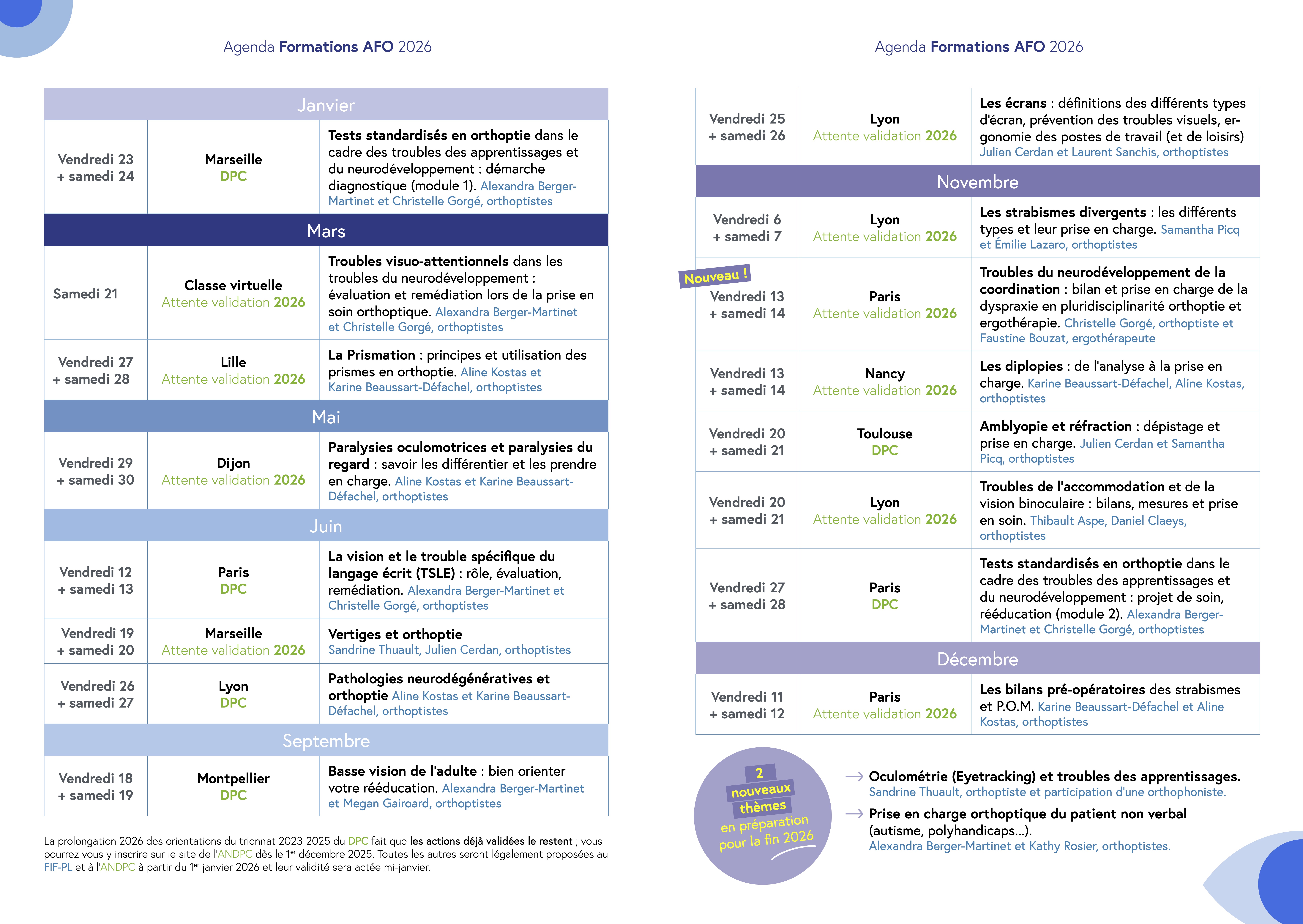 Calendrier des formations AFO 2026